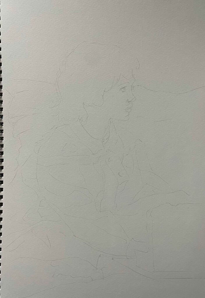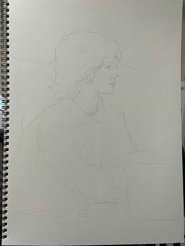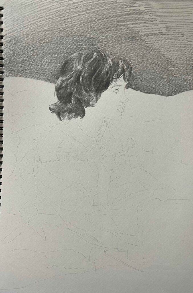 顔は滑らかであるからこそ繊細なタッチで表現していくと良いでしょう。洋服を描き始めました。最初は大変そうだなとは少しだけ思いましたが、計画的に描いて行ったら形になっていったので面白かったです。