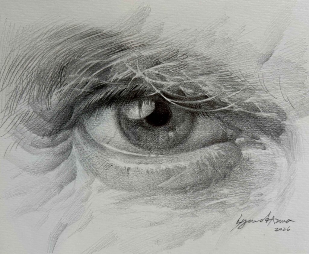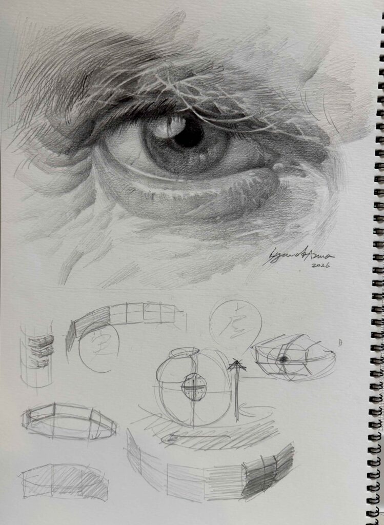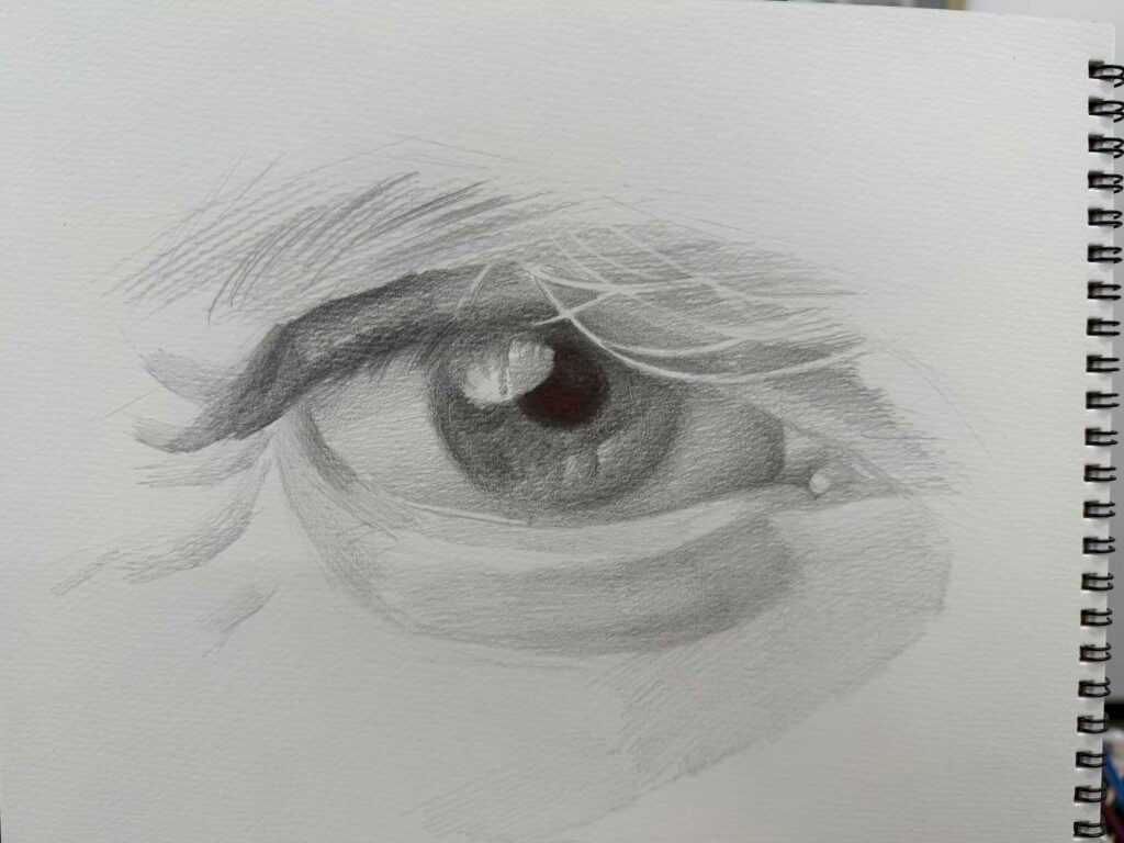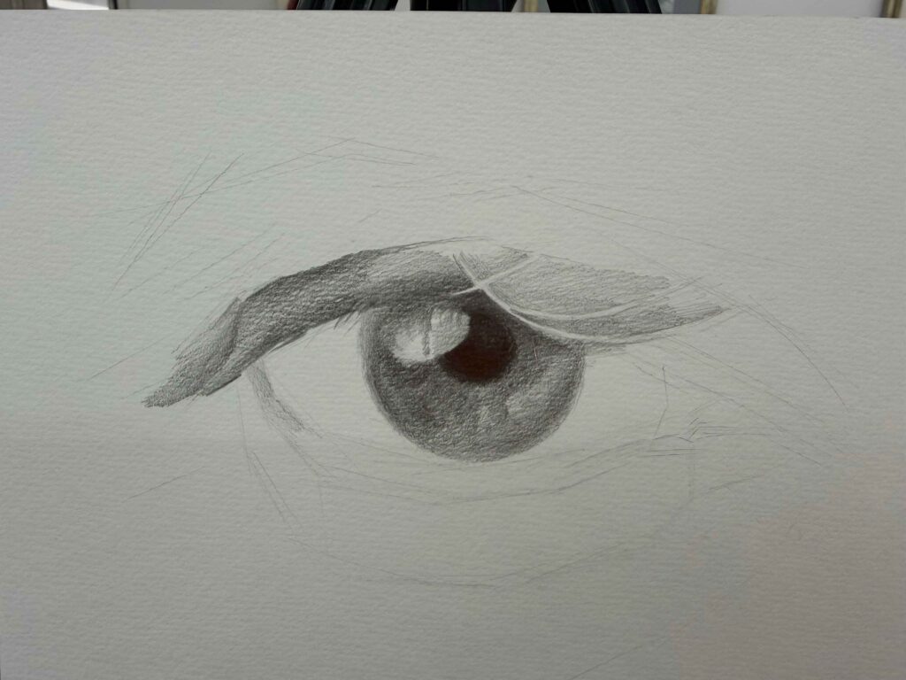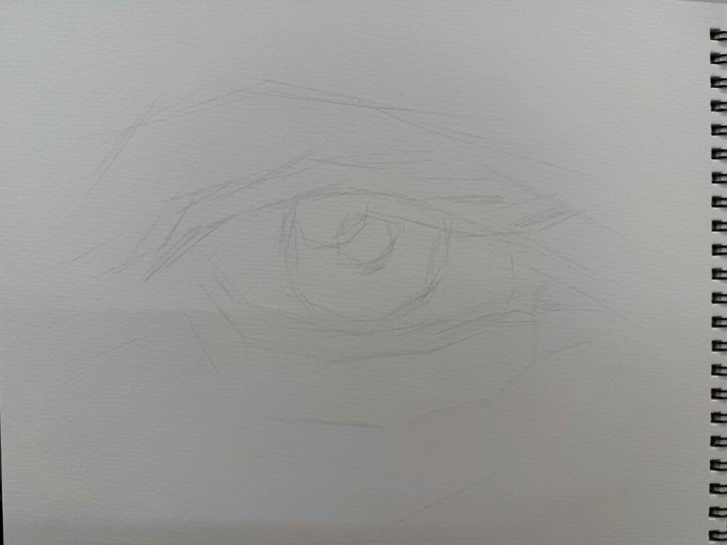 目を描こうとするのではなく、目の周りを構成する要素を描くことがポイントです。