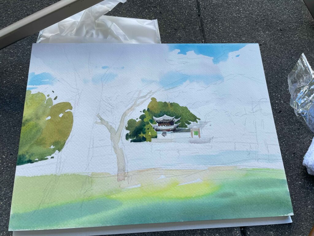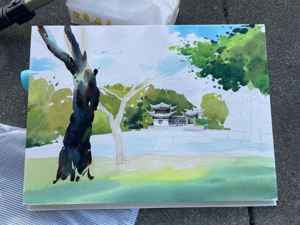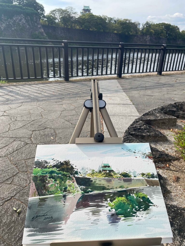 師匠である父が大阪に遊びに来たので一緒に写生に出かけました。いつも写生をする時、どこを見ても絵になるし、美しく感じられ、描く場所を一つ選ぶだけでも贅沢な気持ちになります。
