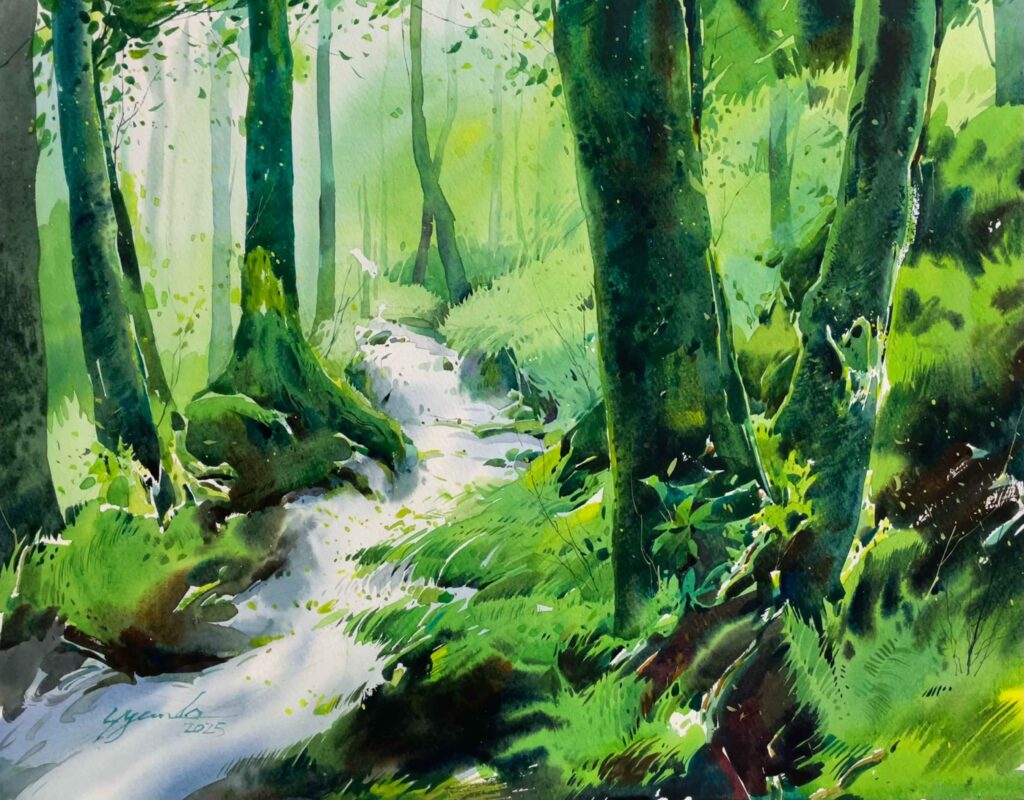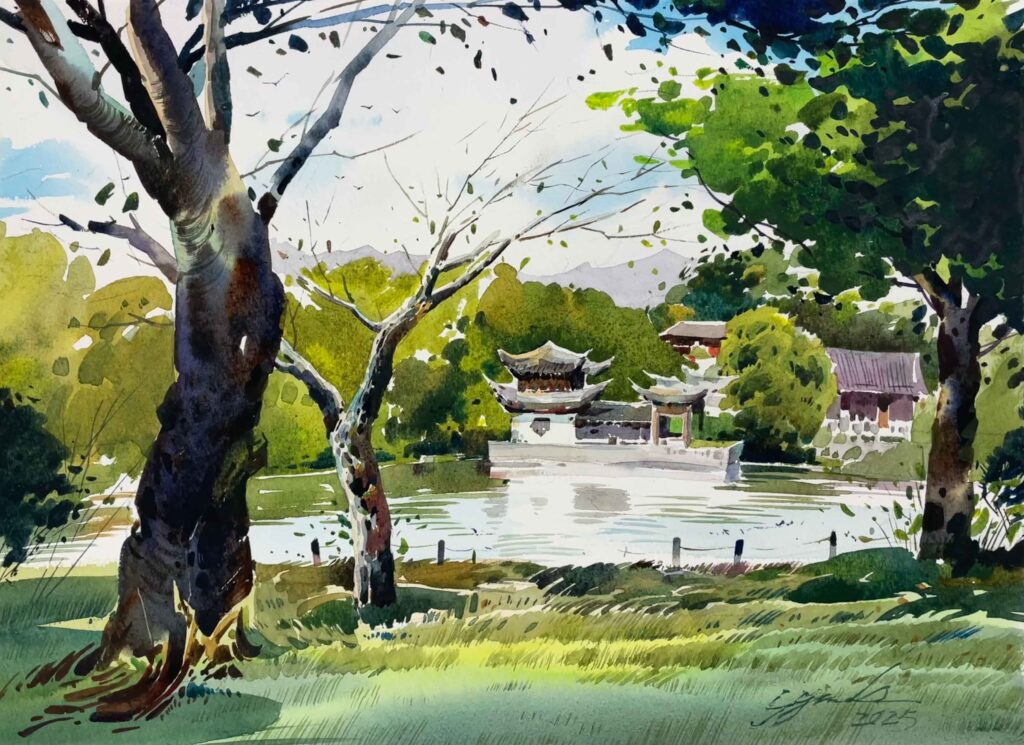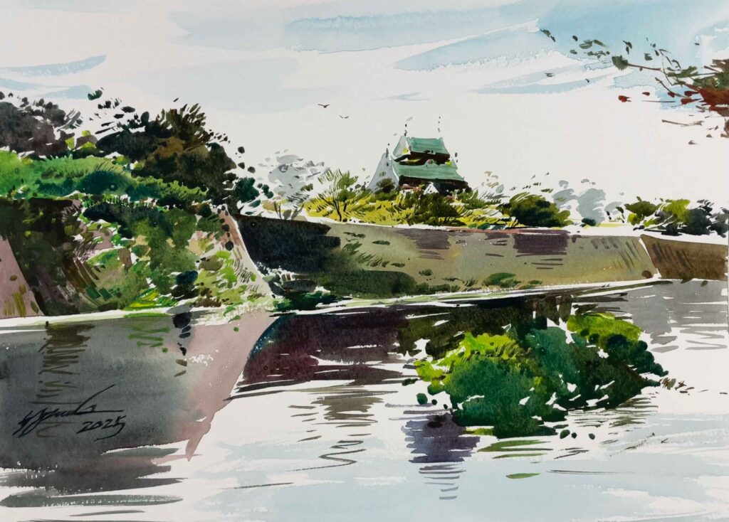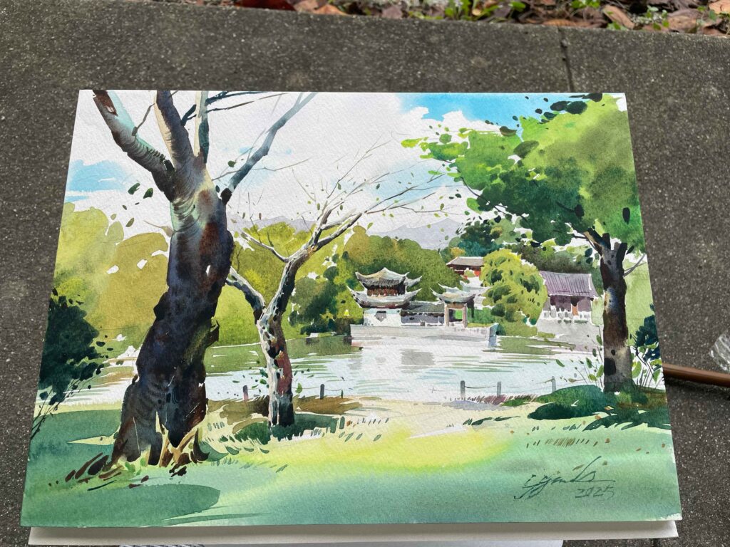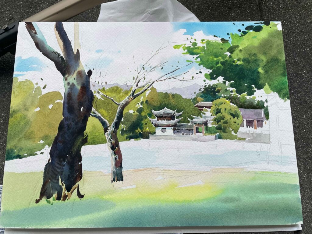 AZUMAs流水彩画は鉛筆で下書きをしないので直接筆をとり、約1時間ほどで描き終わりました。