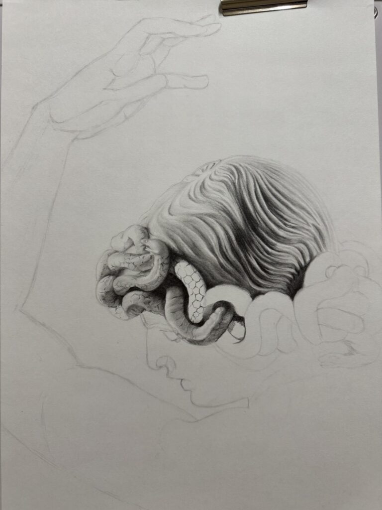 凹凸や質感を、題材を見た時の印象に近いように描けた時が楽しいです。それを積み重ねて全体が描けた時は深い達成感があります!また、この絵を描けるのは(この味を出せるのは)自分だけかもしれないと思うと、自分が代替不能な存在に感じられるところが好きです。